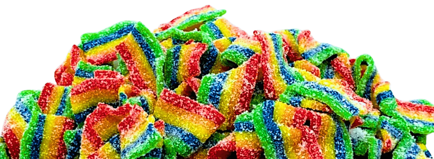 Rainbow Bites – A mashup of all the classic sour hits lemon, blue raspberry, green apple, strawberry, and orange twisted together into a mouth-zapping flavour drop.